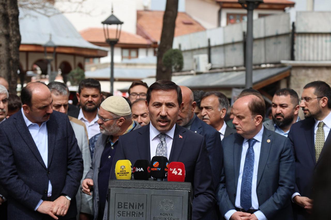Cuma namazı sonrası Kapu Camii önünde düzenlenen basın açıklamasında konuşan AK Parti Konya İl Başkanı Hasan Angı, saha çalışmalarının yoğun şekilde sürdüğünü ifade ederek, “Artık yarın itibariyle son çalışmalarımızı yapacağız ve Pazar günü de inşallah kıymetli hemşehrilerimizin sandıkta neticelerini belirleyeceği güzel bir seçimi birlikte yaşayacağız. Bugüne kadar olduğu gibi bundan sonra da Cumhurbaşkanımız liderliğindeki AK Parti hareketi, yerel belediyecilikte markalaşmış Konya modelinin kıymetli belediye başkanlarımızca şehrimize kazandırdığı bu büyük hizmetleri devam ettireceğine inanıyoruz” dedi.