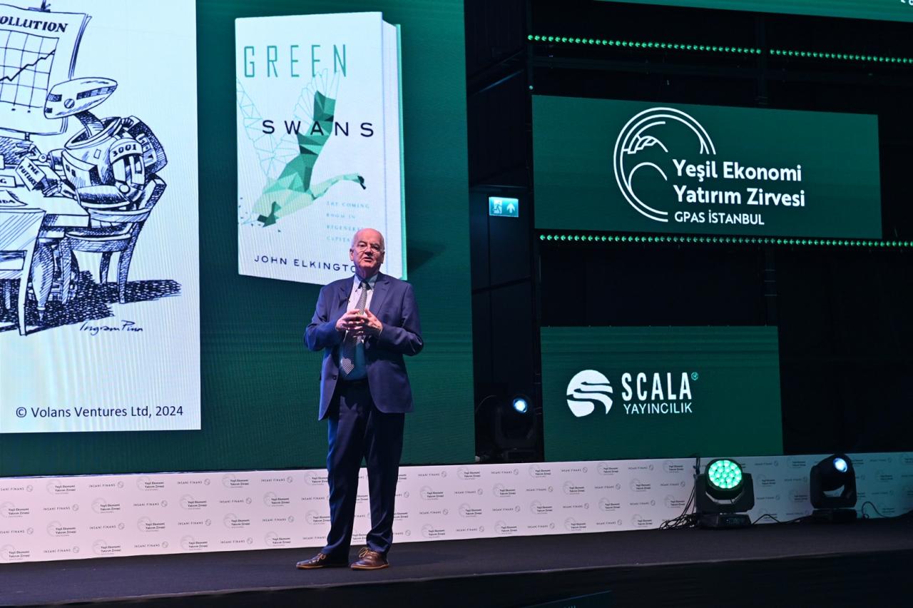 Açılış konuşmasını Yeşil Kuğular kitabının yazarı ve sürdürülebilir kalkınmanın otoritesi olarak bilinen John Elkington’ın yaptığı Yeşil Ekonomiye Yatırım Zirvesi’nde bugünün dünyasının “çirkin ördek yavrularının” yarının dünyayı kurtaran “yeşil kuğularına” dönüşebileceğini anlattı. Yeşil dönüşüm esaslarını gerçek dünyadan örnekler ve yeni teknolojilere ilişkin profilleri kullanarak açıklayan Elkington, küresel önceliklerde oluşabilecek değişimden sağlam ve daha güçlü çıkmak gerektiğini söyleyerek “Siyah kuğular; aykırı, aşırı etkin ve farkına sonradan varacakları şekilde rasyonelleşmişlerdir. Genellikle Siyah veya Gri Kuğu sorunlarının ve değişen paradigmaların, değerlerin, zihniyetlerin, politikaların, teknolojilerin, iş modellerinin ve diğer kilit faktörlerin bir kombinasyonu tarafından katalize edilen derin bir pazar değişimi gerçekleşir. Bu noktada yeşil kuğular ekonomik, sosyal ve çevresel zenginlik yaratma şeklinde üstel ilerleme sağlar” dedi.