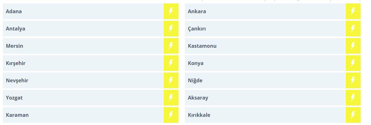 14 İL İÇİN SARI KODLU UYARI
